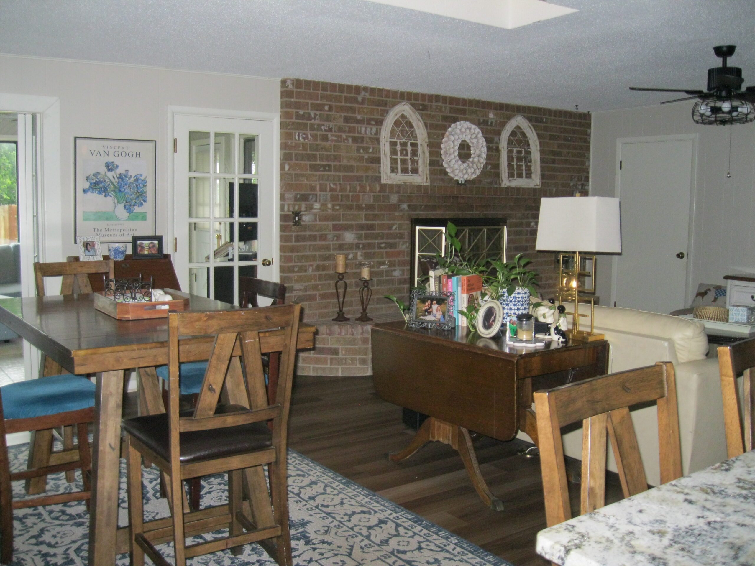 Charming Home, full of character and decorated by a professional! 3 living areas. Original living room currently used as formal dining, but could be parlor, music room. Home completely remodeled 4 years ago with all new appliances, kitchen totally changed–new cabinets and configuration and opened up to large family room. Granite counters and one making breakfast bar and dining area. Focal point is brick walled fireplace with hearth seating and HUGE walk-in closet. Then that opens to large sun room that is also heated and cooled making entertaining a breeze with access to the covered patio in privacy fenced back yard. Guest bedroom is close to bathroom with tub shower. Primary bedroom is large with double closet and has huge ensuite bath. 3rd bath is adjacent to utility room with outside door. This area also connects to 2 car attached garage with openers and there is another door from house to garage. An attic access to storage is in garage. 3 storage buildings in yard. 2 water heaters, 2 HVAC systems. Luxury vinyl flooring and some ceramic. Brick veneer siding, metal roof. Everyone who has ever been in this charmer, love it! It won’t last long!