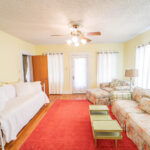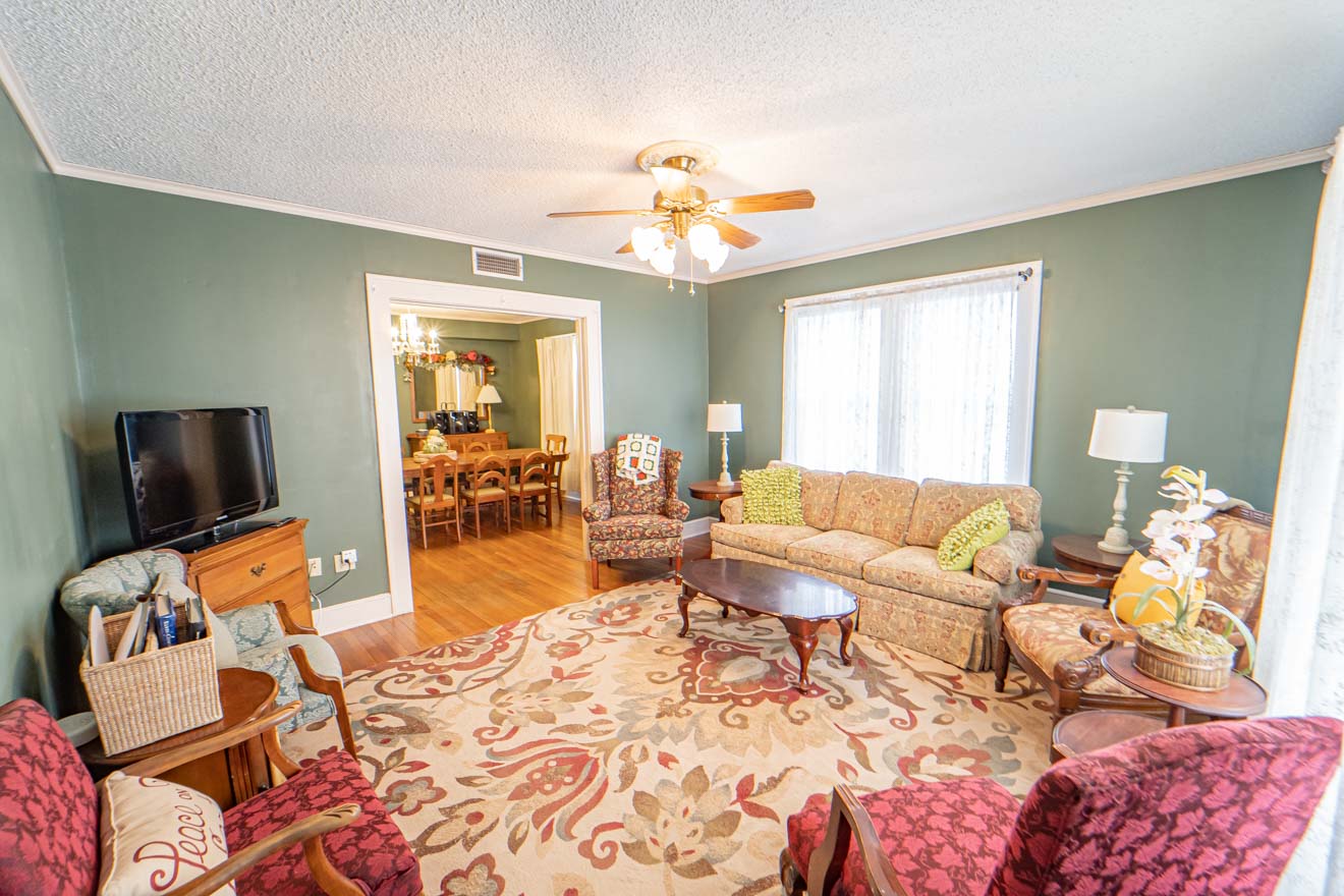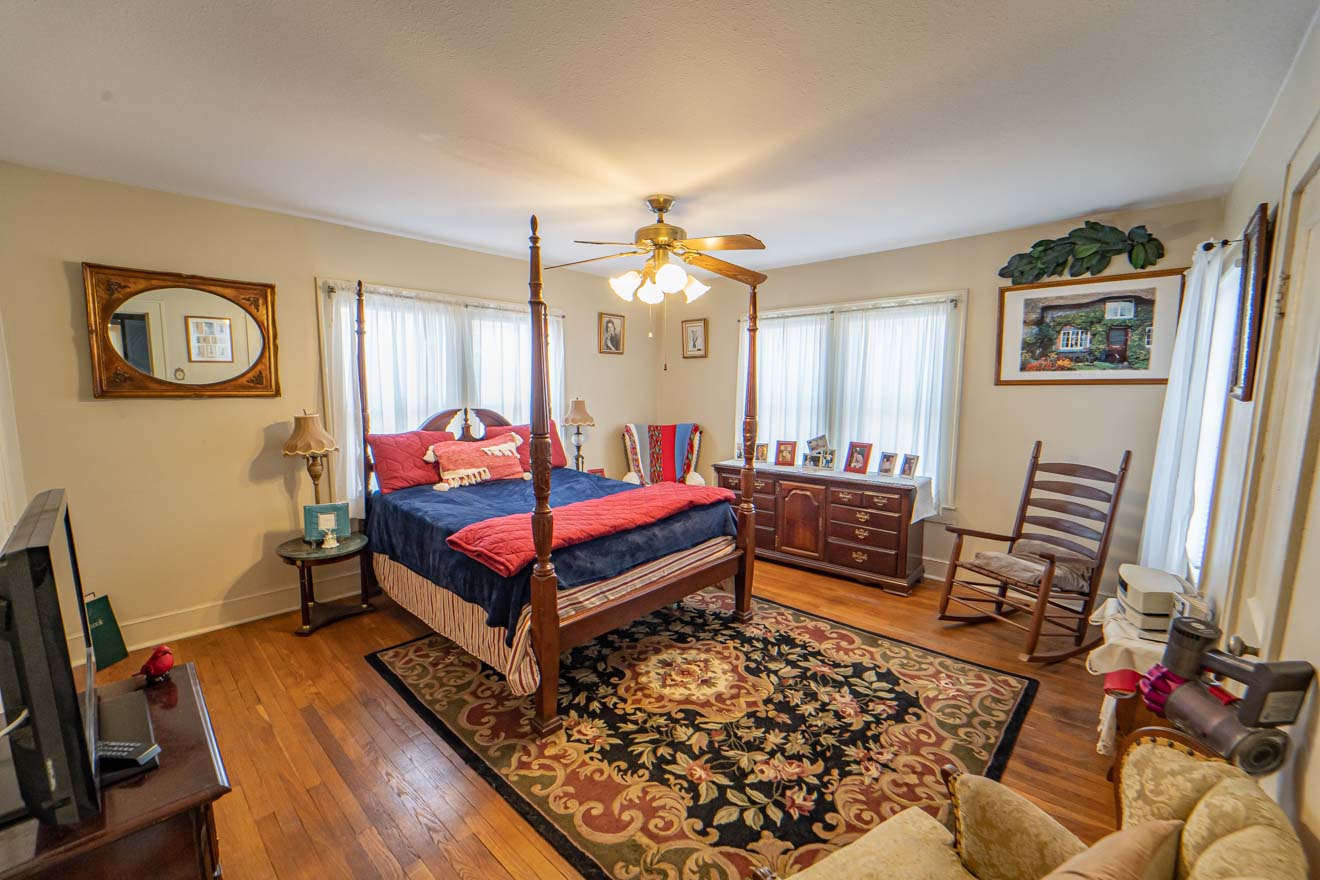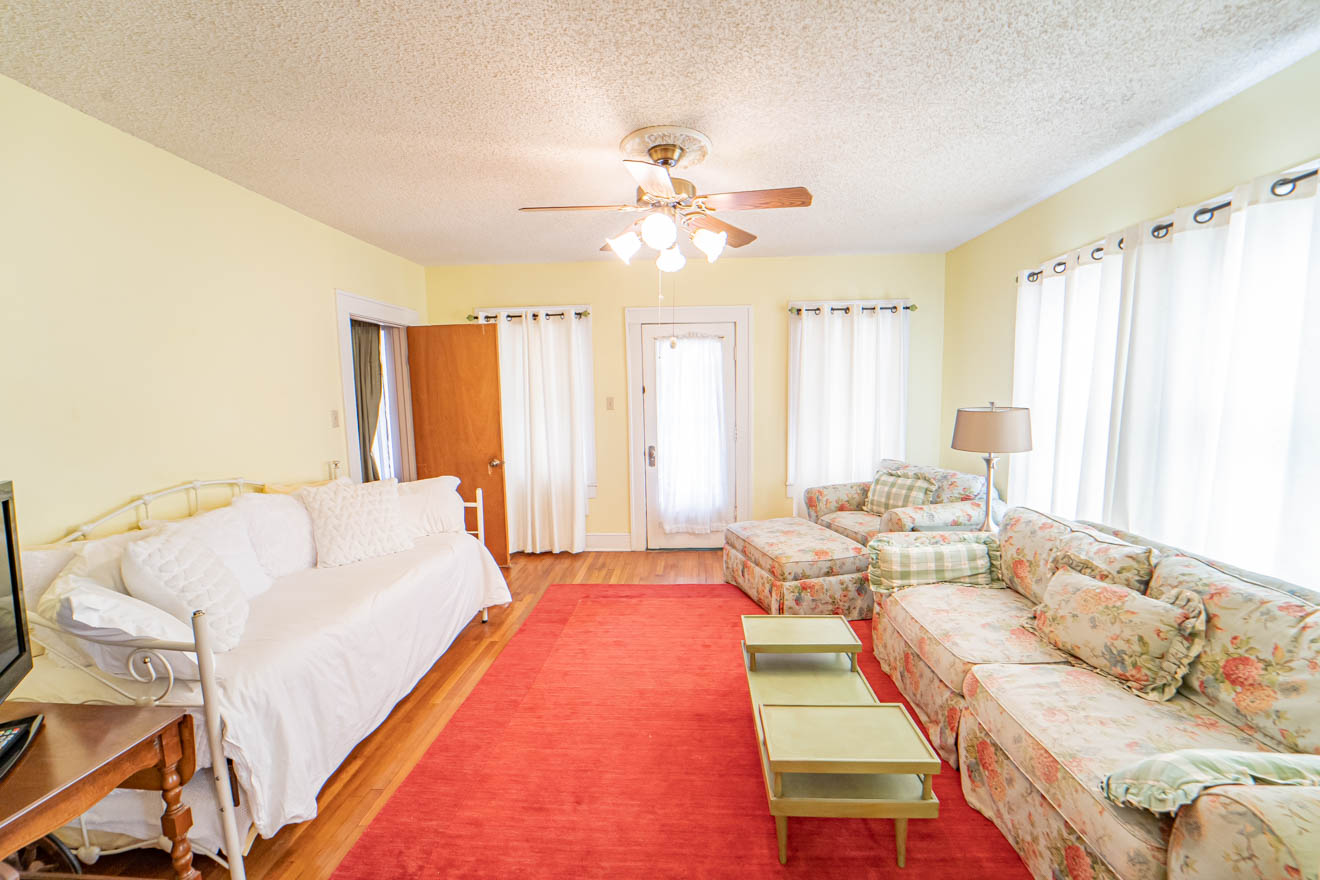 Property initially purchased in September of 1995 configured as four apartments, two upstairs and two downstairs. We renovated from from 4 apartments into a bed and breakfast, featuring a large downstairs kitchen and breakfast noon, with walk in pantry, a formal dining area, two bedrooms and a two room suite, each with separate bath rooms. Upstairs on east side is apartment with living area, two bedroom, a bath room, laundry room and attached metal building (no heat or air). West side upstairs feature a suit with bathroom as well as additional bedroom in the back end with separate bath. Property can remain a rental with income potential through air bnb as we currently have it or converted to a residence. The detached three car garage with two bedrooms and kitchen area can either be renovated or torn down to allow for additional parking. New roof in 2022. Furniture and appliances included with sale.